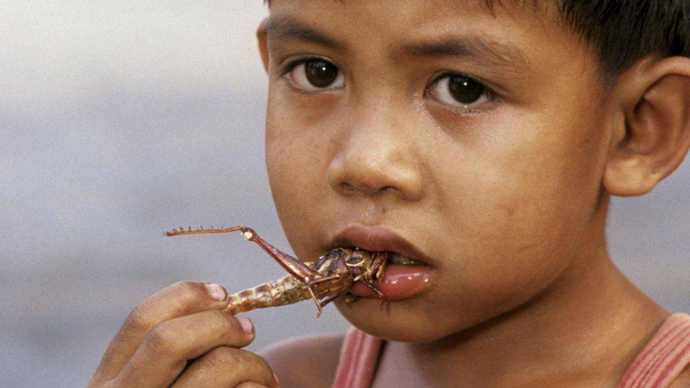 Snadder Denne gutten i en landsby i det nordøstlige Thailand koser seg med en gresshoppe. Her er det like naturlig å spise insekter som det er å spise reker hos oss. Og forskjellen er egentlig ikke så stor! Alle foto: ARILD HAGEN