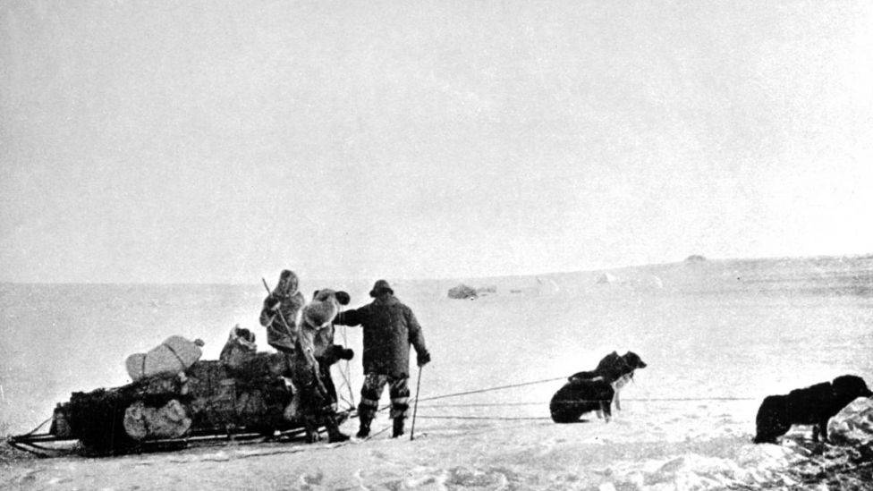 • Sydpolen 1911 Roald Amundsen, Olav Bjaaland, Helmer Hansen, Sverre Hassel og Oscar Wisting nådde Sydpolen 14. desember 1911, før erkerivalen Robert Scott. Foto: NTB/SCANPIX