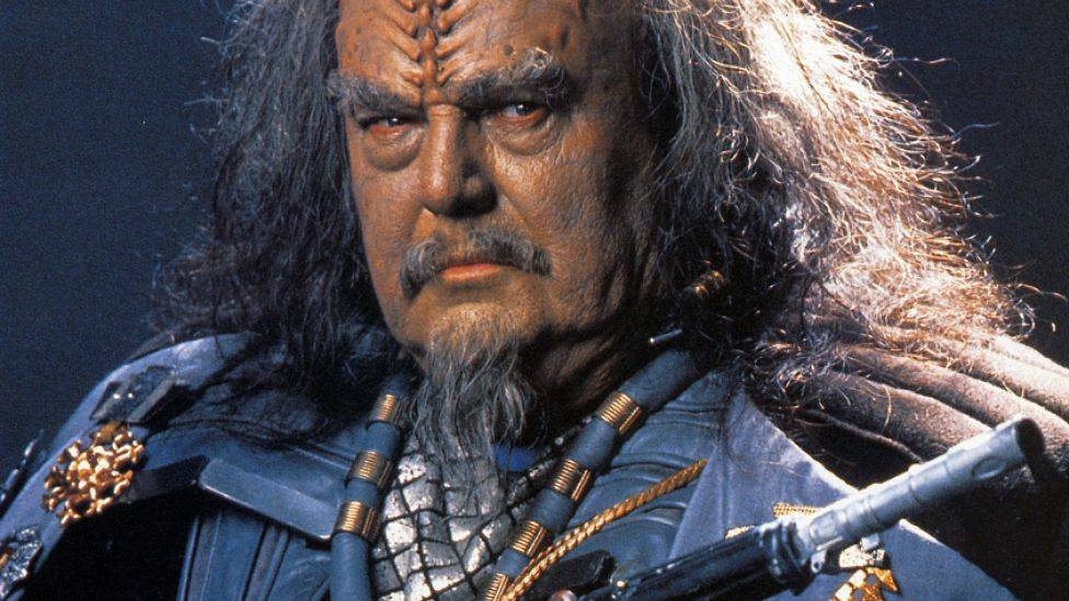 Klingonsk Lingvist Marc Okrand konstruerte et fiktivt språk til rasen klingon i «Star Trek», her general Korrd, og språket fikk også sin egen ordbok.