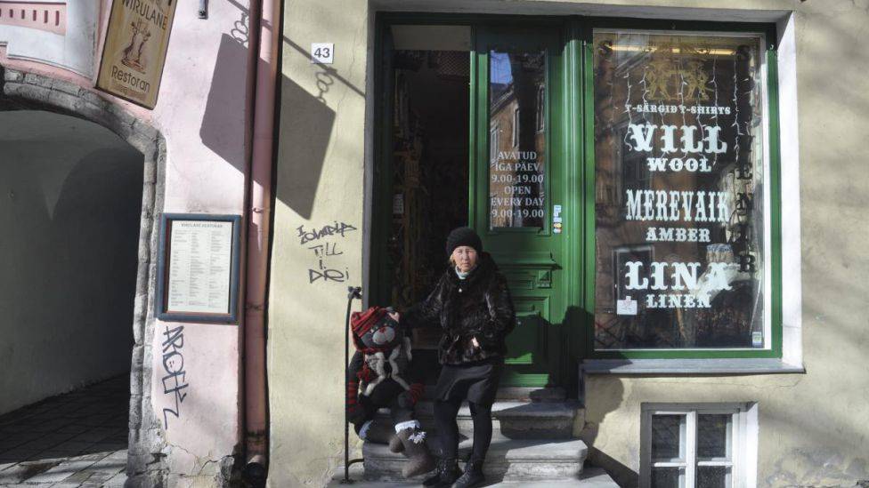 Egen bedrift Natasja Vasiljevna driver en liten butikk i gamlebyen i Tallinn, der hun selger strikkegensere. Foto : PER KRISTIAN AALE, AFTENPOSTEN