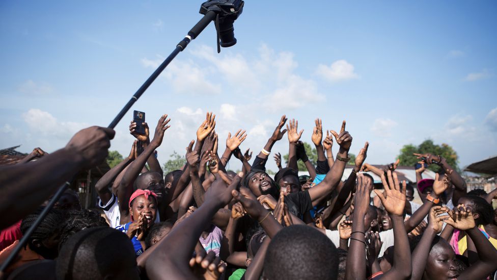 I løpet av fem minutter er bilene omringet av et hundretalls liberiere som prøver å få et glimt av landets kanskje største popstjerne. Produksjonsteamet, mennene i de hvite singletene, kan trygt konstatere: Heller ikke denne gangen blir det vanskelig å finne statister til musikkvideoen de skal lage.