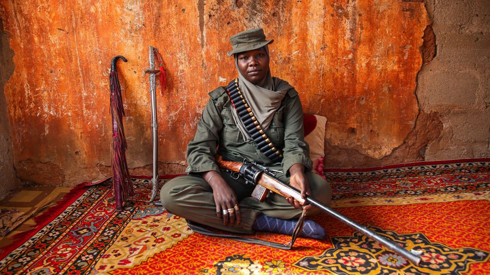 Med en høyde på rundt 180 cm, iført grønne jaktklær prydet med et patronbelte over skulderen, er Bakari Gombi en slående figur. Hun er muslim og forlater aldri hjemmet uten å være ikledd slør. Men i likhet med mange andre på landsbygda i Nordøst-Nigeria, tror Bakari Gombi også på den tradisjonelle åndeverdenen. En av oppgavene hennes som sjef, er å sørge for at jegerne får en hemmelig drikk som antas å beskytte dem mot kuler.