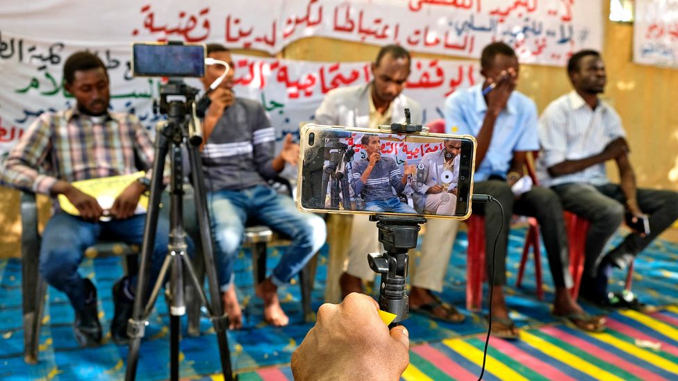 Han sitter i en sofa i et av Khartoums flere beit al-thawra, revolusjonshus, der demonstranter søkte tilflukt og la nye planer under revolusjonen. På veggene henger fargerike malerier av kjente sudanske kunstnere, på bordet står flere tomme te- og kaffeglass.