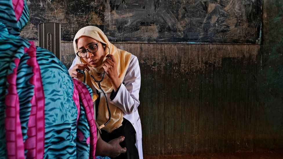 • Trenger bedre helsetjenester En frivillig lege foretar en gratis helsesjekk av familier som bor i Maio i utkanten av Khartoum.
