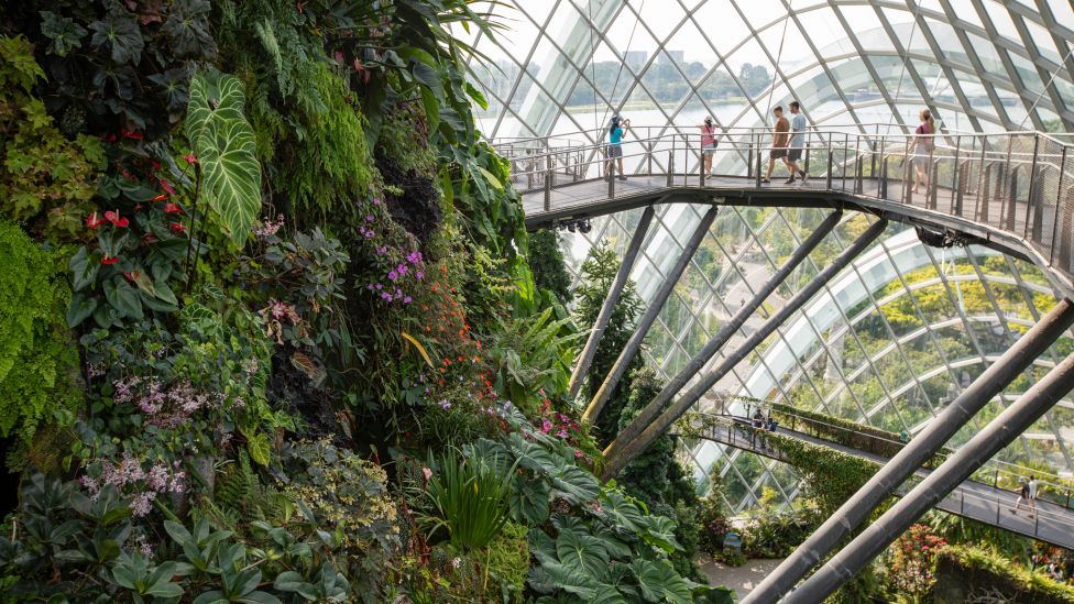 Singapores unike tropiske arkitektur kan skryte av bygninger med systemer for å resirkulere regnvann som etterligner maurtuers design, porøse strukturer som utnytter naturlig ventilasjon for å redusere behovet for aircondition, og sykehus som henger sammen med parker for å dra nytte av grøntområdenes terapeutiske egenskaper. Den tette labyrinten av klatreplanter som dekker Oasia Hotel, er blitt et hekkeområde for gribber og ørner.