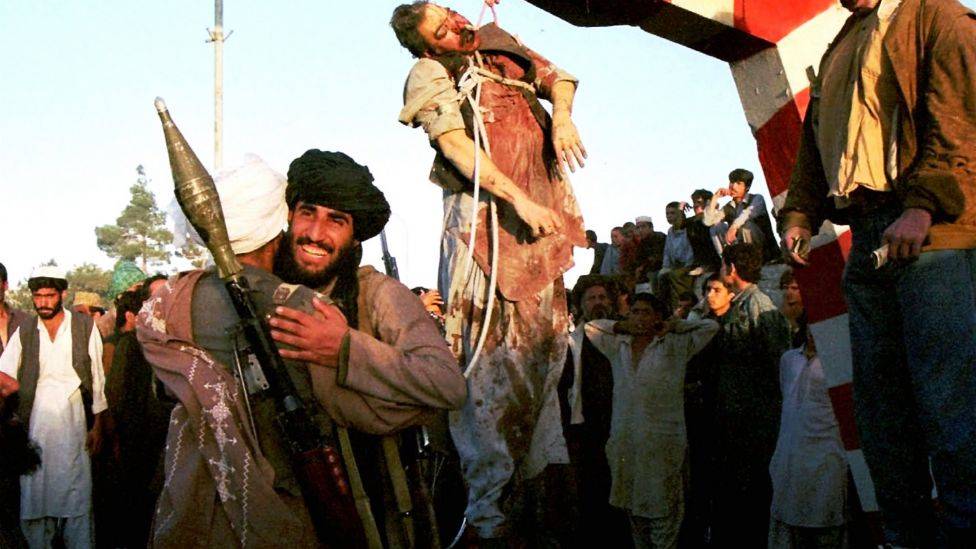 I Kabul ble deres ankomst i 1996 brutalt markert. Kabuls innbyggere våknet opp til synet av liket til tidligere president Najibullah – kastrert og mishandlet – hengende fra en stolpe.