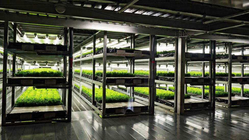 Innendørs vertikalt jordbruk. En mer etablert form for teknologisk jordbruk i Japan er vertikale gårder, og den største og mest suksessfulle av disse er salatfabrikken Spread utenfor Kyoto – som daglig produserer 22 000 salathoder innendørs i moderne lokaler.