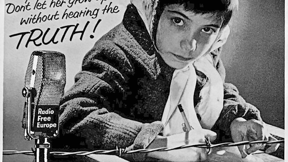 • Ønsket å påvirke Lanseringen av Radio Free Europe i 1950 ble ledsaget av reklamer med budskap som «Ikke la henne voksen opp uten å høre sannheten! Nå! Kan du kringkaste dine tanker om sannhet og frihet bak jernteppet over Radio Free Europe!» Foto: RFE-RL