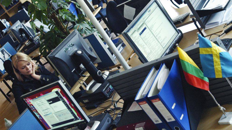 • Det nye Nord-Europa Norske og nordiske bedrifter flytter funksjoner til Baltikum, her fra et svensk callsenter i Riga. «Hardt arbeidende med lavt sykefravær og ønsket om å gjøre ting», blir trukket frem som grunner for å kjøpe tjenester herfra Foto: HENRIK PRYSER LIBELL