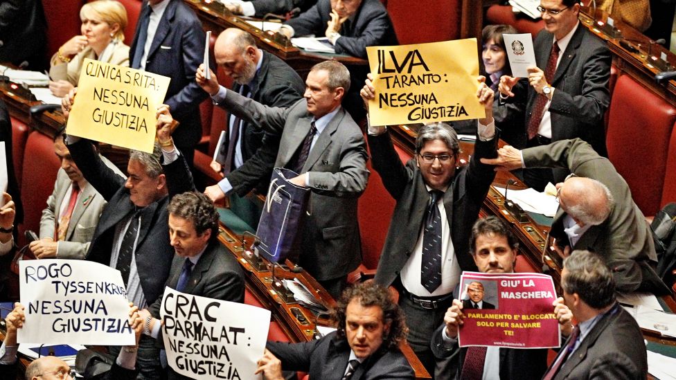 Politisk ansvar. Historien til det omstridte stålverket strekker seg helt tilbake til etableringen i 1905. Fra 1965 var fabrikken i statlig eie under navnet Italsider. Etter kriseårene på 1980-tallet ble selskapet i 1995 solgt til den Genova-baserte Riva-familien og privatisert. 26. juli 2012 gikk det italienske politiet – carabinieri – inn og beslagla fabrikkområdet. Emilio Riva – «il padrone» – og sønnen Nicola ble arrestert for forsettlig å ha forårsaket «en økologisk og epidemiologisk katastrofe med massiv forgiftning av landbruksprodukter, forsømmelser når det gjelder sikkerheten for arbeiderne på arbeidsplassen, for skade på offentlige gods, for utslipp av farlige stoffer og luftforurensning».