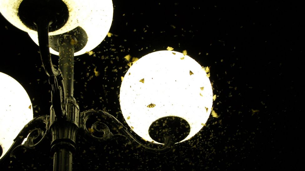 Nattsvermere og andre insekter samlet rundt utelys er forstyrret fra naturlig adferd i mørket, tiltrukket av lyset i lampen. Der blir de flyvende rundt og ender opp utmattet, de kan dø som følge av varme, eller de blir et lett bytte for fugler og andre som spiser dem.