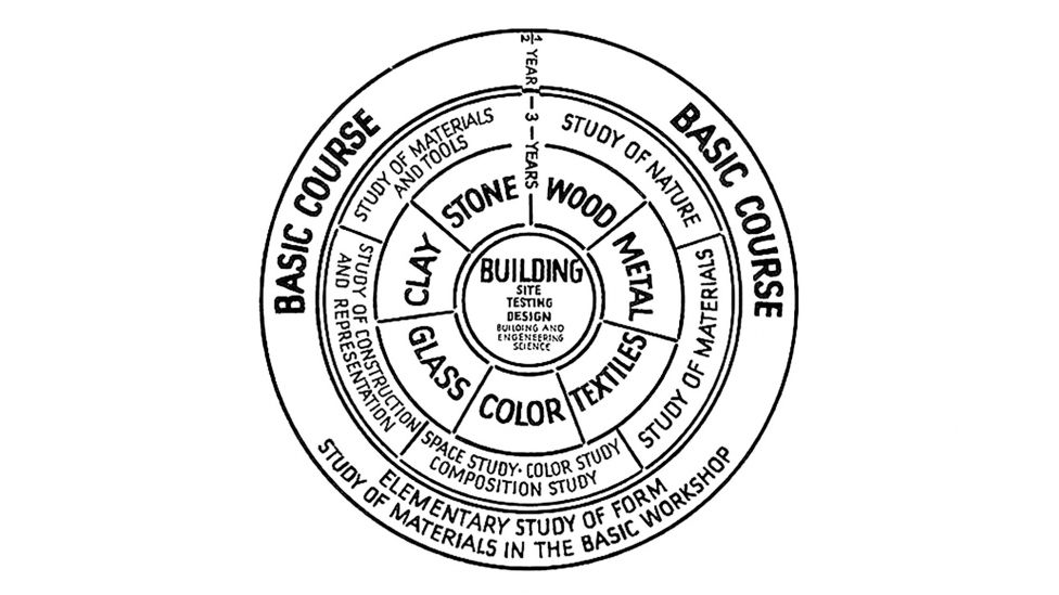 Kunst kan ikke, lik et håndverk, læres, mente Gropius. Håndverket må riktignok beherskes fullt og helt, men det er først ved «himmelens nåde» at kunst manifesterer seg i et materielt uttrykk. Og selv om målet for disse individuelle uttrykkene, «for all formgivende virksomhet» ifølge Gropius’ Bauhaus-manifest, er selve bygget (der Bau), så skulle det riktignok ta flere år før arkitektur ble en egen studielinje ved Bauhaus, og før skolen i det hele tatt delte ut noe diplom.