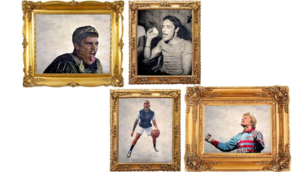 • Skamløse Keiser Commudus fremstilt av Joaquin Phoenix i filmen «Gladiator» (2000), Marlon Brando, Nick Kyrgios og Oliver Kahn.