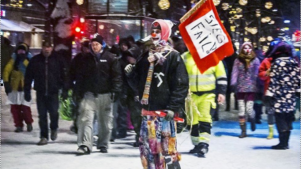 Dype røtter. Det er en kald januarkveld i Kemi, Nord-Finland i 2016. De selvutnevnte natteravnene har i flere måneder vandret rundt på kveldstid. Gruppen består av etnisk finske menn som ønsker å beskytte byens innbyggere mot nyankomne flyktninger på asylmottaket. Da dukker det plutselig opp et tyvetalls klovner. Klovnene rusler videre sammen med de hettekledde soldatene. De tuller og tøyser på klovnevis. På et tidspunkt slår de ring rundt Odins Soldater og synger. De finske klovnene blir stående som et symbolsk innlegg i den flammende europeiske innvandringsdebatten. Og det er ikke første gang i historien at klovnene protesterer.