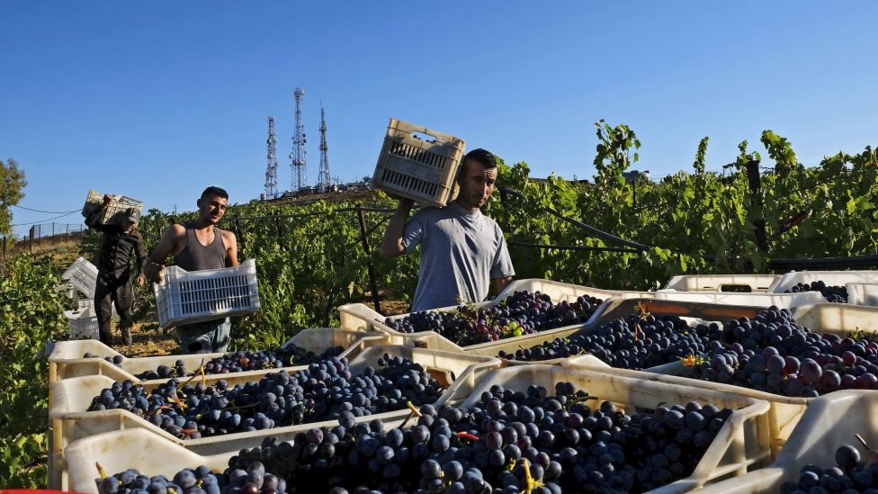 I en annen fjellskråning, der Eddie Chami høster sine druer, er dagens arbeid nesten ferdig. Det lille teamet som jobber med innhøstingen, holder på å rydde sammen tingene sine. De kommer alle fra Syria, Libanons naboland i nord og øst. Den libanesiske vinindustrien, i likhet med alt jordbruk i landet, er nesten helt avhengig av syrisk arbeidskraft.