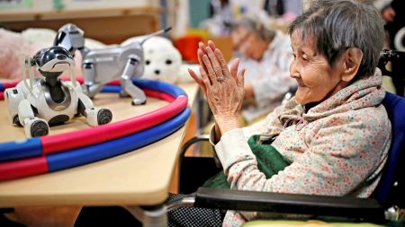 På Shintomi sykehjem i Tokyo er 20 ulike typer roboter ansatt. Myndighetene håper dette kan bli fremtiden.