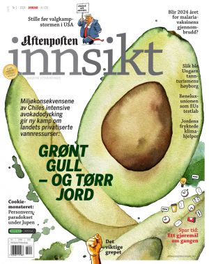 Godt nytt år! I årets første utgave av Aftenposten Innsikt kan du lese om det grønne gullets forbannelse. Vi får ikke nok avokado. Etterspørselen etter den sunne, grønne frukten har eksplodert og øker stadig, selv om vi vet at den ikke er et miljøvennlig valg. I Petorca i Chile må befolkningen leve med konsekvensene. Plantasjene suger ut nær alt grunnvannet for å slukke tørsten til den lukrative avokadoen som går til eksport.