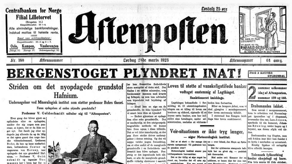 Inngangen til den stille uken ble langt fra rolig for redaksjonen i Aftenposten. Lørdag 24. mars 1923 sto det øverst på avisens forside: Bergenstoget plyndret inat! Og reaksjonene lot ikke vente på seg.