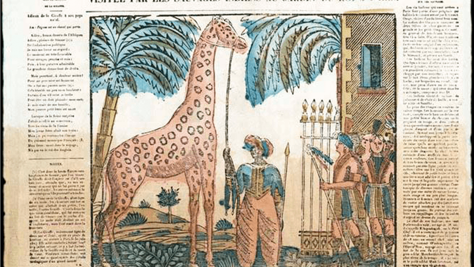 Om en sjiraff er vakker, kan sikkert diskuteres, men fransk presse var ikke i tvil. De ga henne det ene kallenavnet mer høystemt og fjollete enn det andre: «Den vakre egypterinnen», «den deilige afrikanerinnen» og «tropenes barn». Avisene hadde daglige rapporter fra turen, og Karl 10. skal etter hvert ha blitt ganske utålmodig. Mens «halve Frankrike» snart hadde sett sjiraffen hans, var han selv tvunget til å vente. Kongelig etikette tilsa at gaven måtte komme til ham.