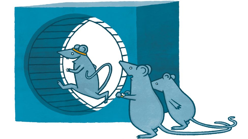 «Så hva vil være best for de menneskene?» spurte Wilson, den opprinnelige utvikleren av 516, meg. «Å bli fortalt – igjen – at de må mosjonere 30 minutter om dagen, eller å ta en pille?» Man kan svare med et annet spørsmål: Hvorfor kan ikke mennesker bare være mer som mus? Hvorfor velger så mange av oss å droppe fysisk aktivitet til fordel for å se på TV eller å sjekke e-post?